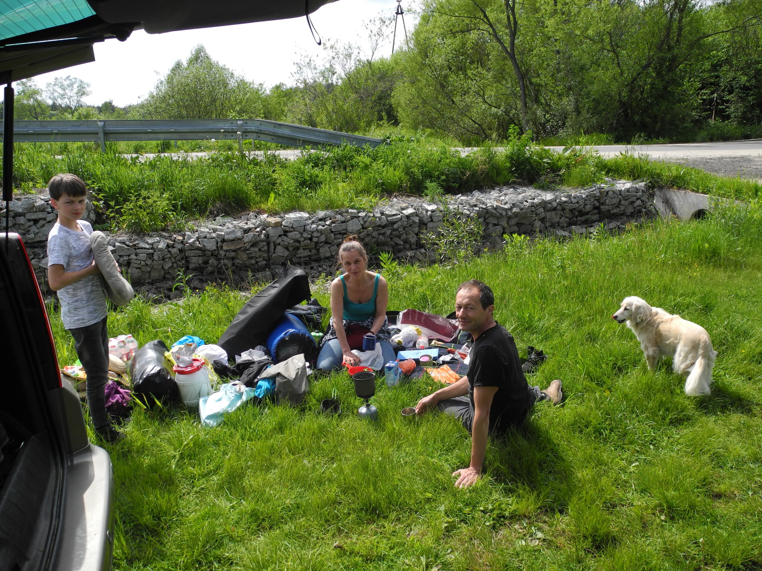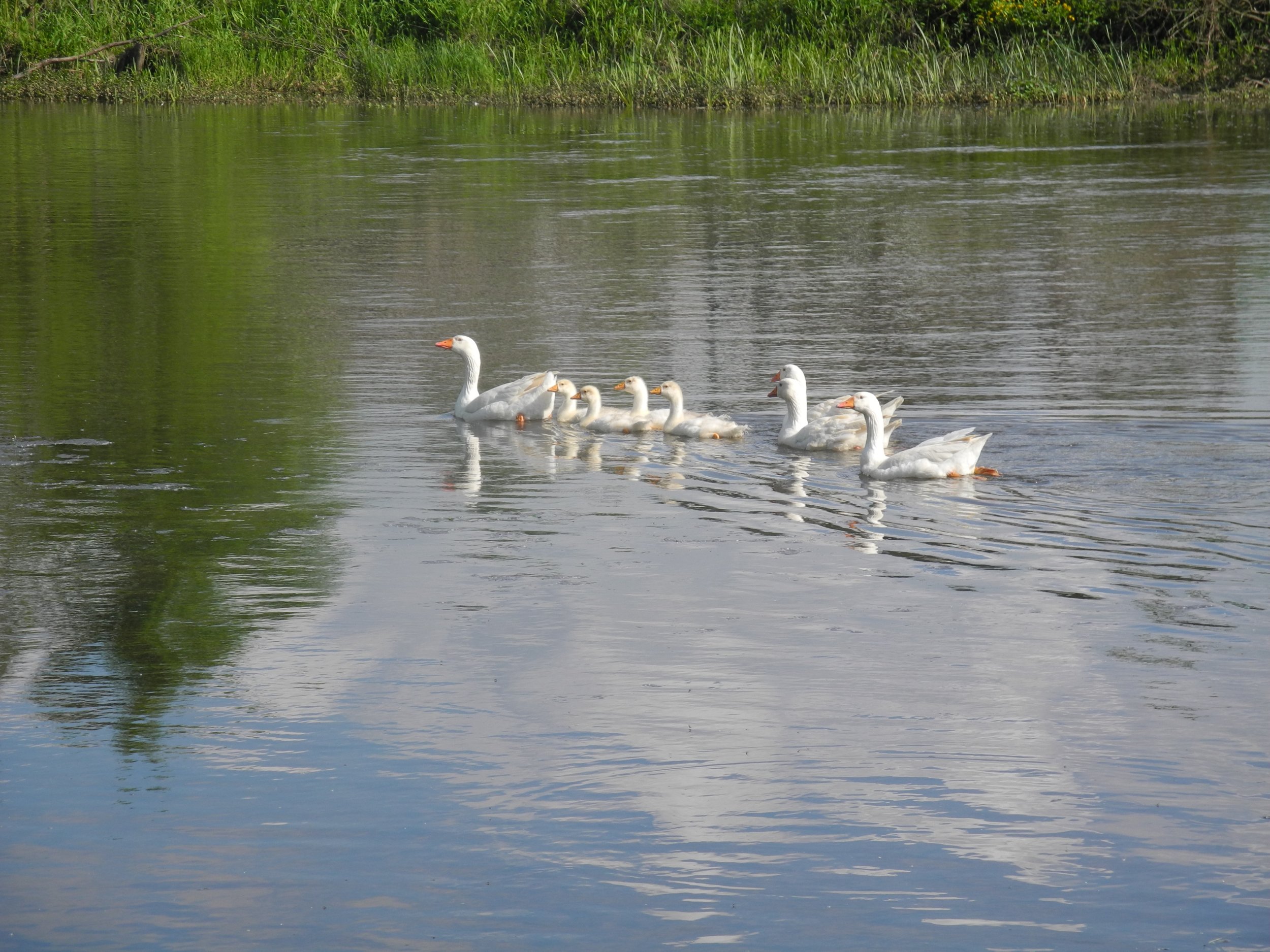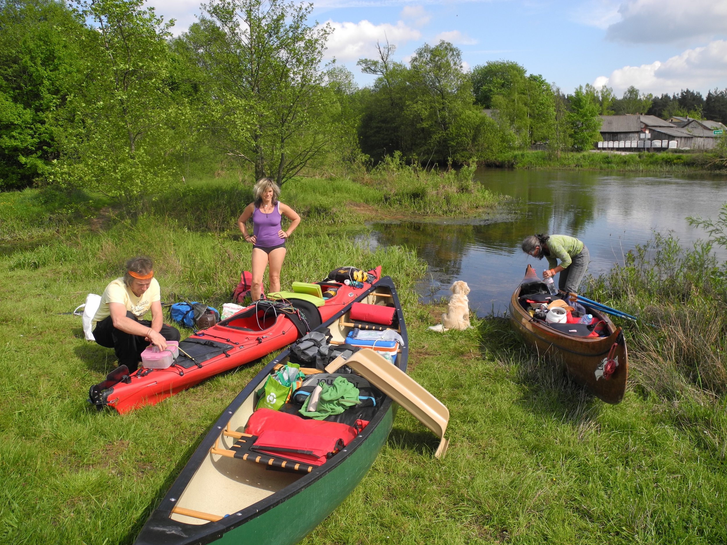 Wie ihr seht, waren wir mit 2 Kanus, unseren 2 Kajaks und einem Faltboot unterwegs…Wir fanden am Ausgangsort auch sogleich eine nette Familie, auf deren Grundstück wir unsere Autos abstellen konnten.