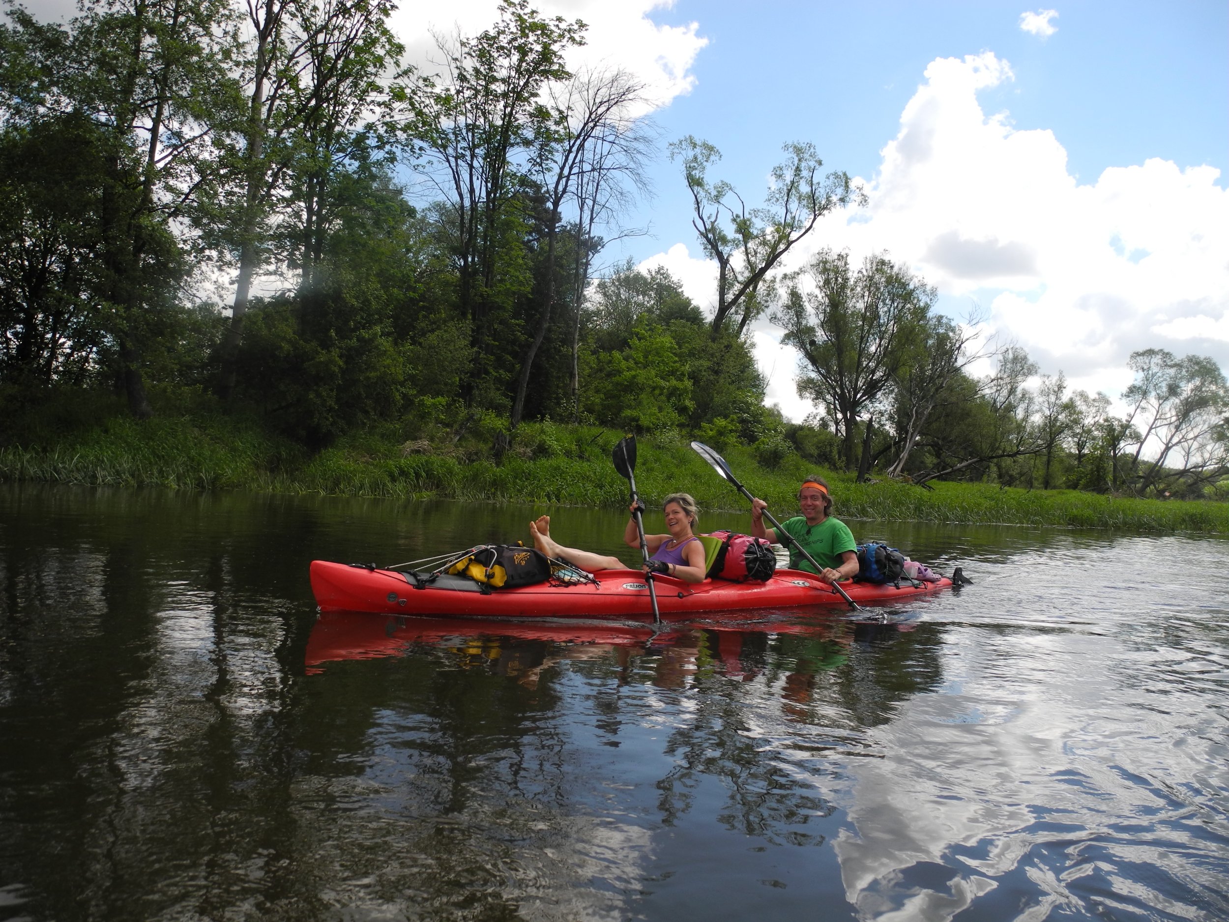 Ursprünglich waren wir nicht so sehr von der Warthe als Paddelgewässer überzeugt, mussten uns jedoch eines Besseren belehren lassen, denn es gibt wunderschöne Abschnitte..Bereits 2016 erreichten uns Gerüchte, dass der Fluss tatsächlich etwas zu bieten hat, was uns etwas neugierig machte.Darum nahmen wir uns 2017 die erste Etappe von dem Dorf Orczuchy (km 647) bis nach Osjakow (km 573) vor.