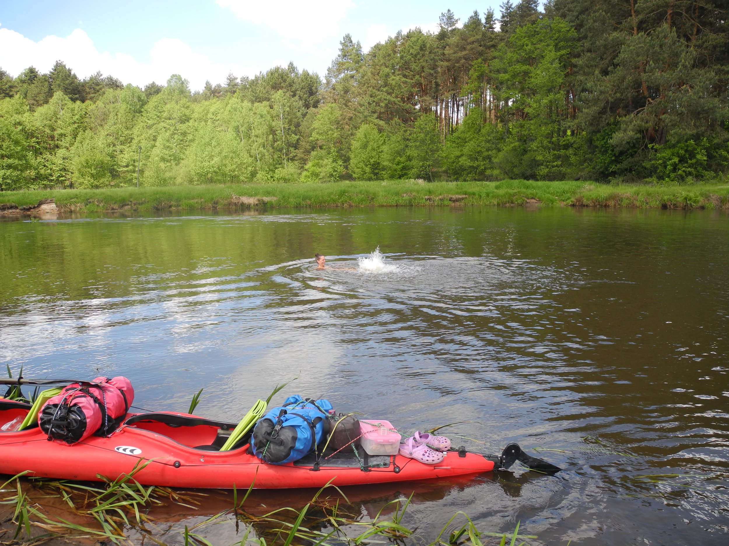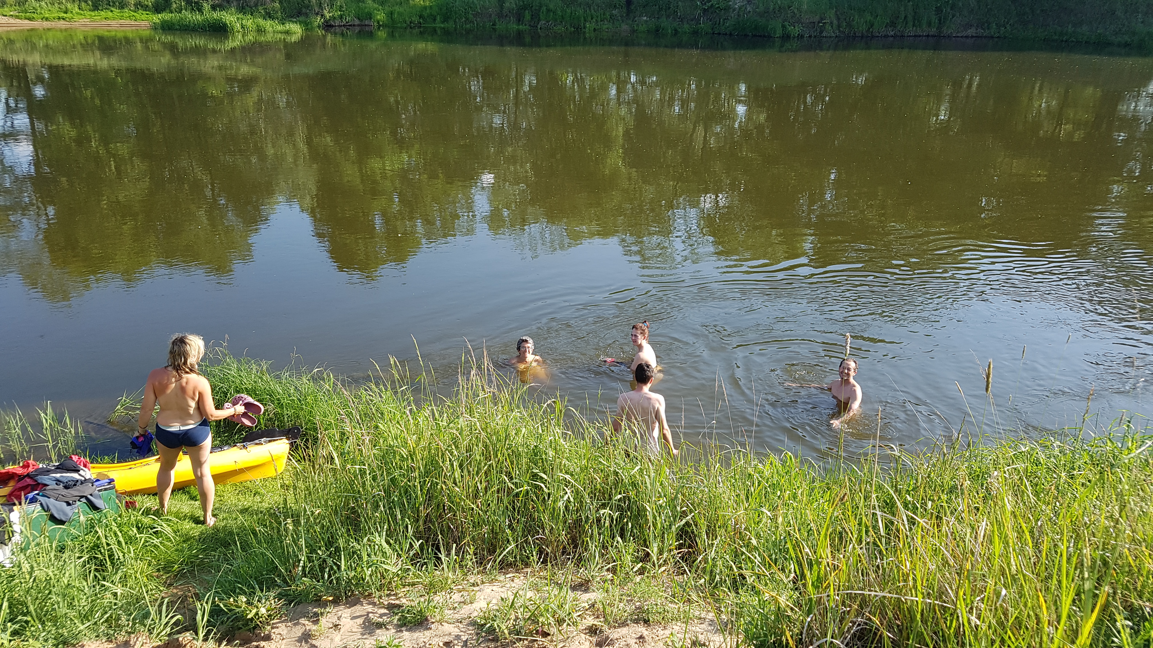 Und zum Abschied noch ein Bad.Wir sind in Osjakow nach ca. 80 km gelandet…Bent hatte noch am vorletzten abgebauten Wehr ( Stromschnelle) einen Riss in der Faltboothaut mitbekommen.. aber sonst war alles wunderbar und macht Hunger auf mehr…