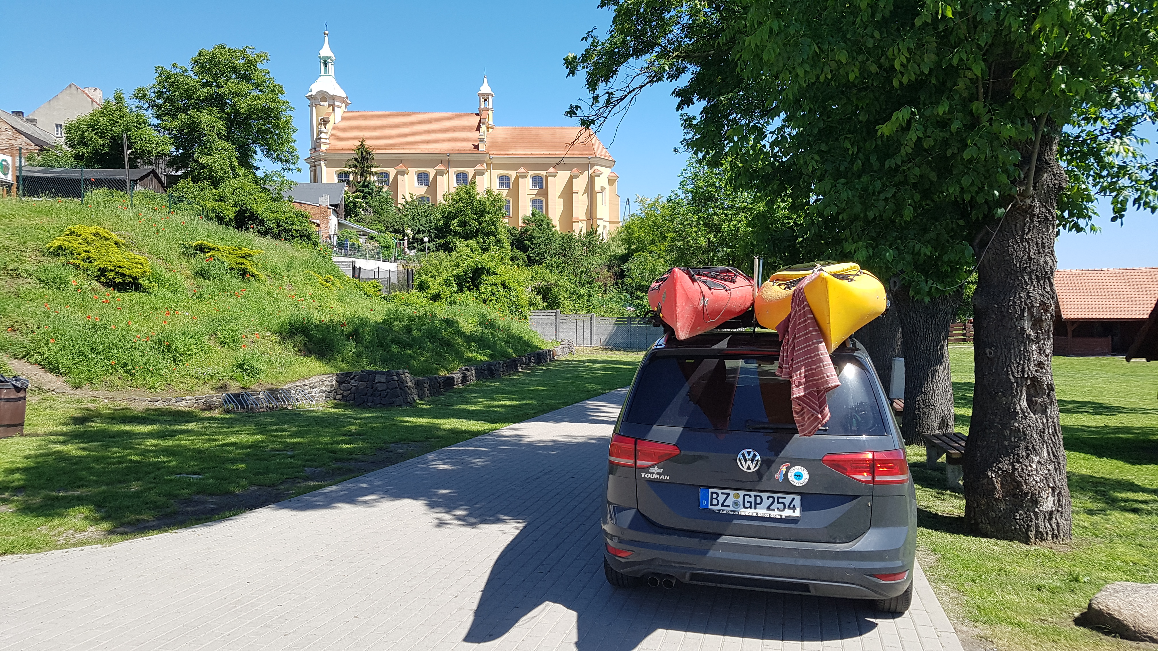 Der nächste Tag war sehr sonnig und wir kamen gut voran..Etwas schwierig wurde es in Dzia łoszyn..( km 623) ..wir mussten eine Rutsche bauen: