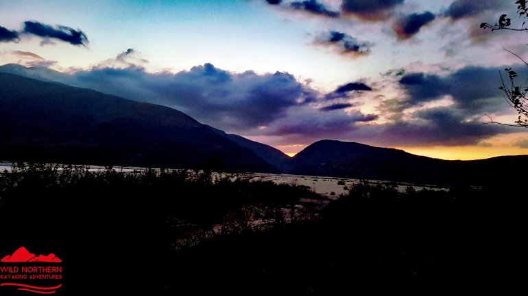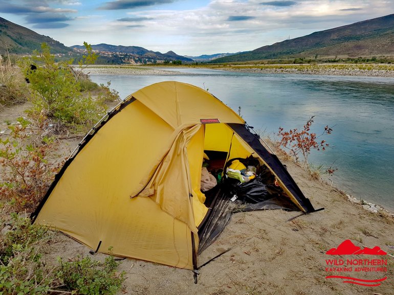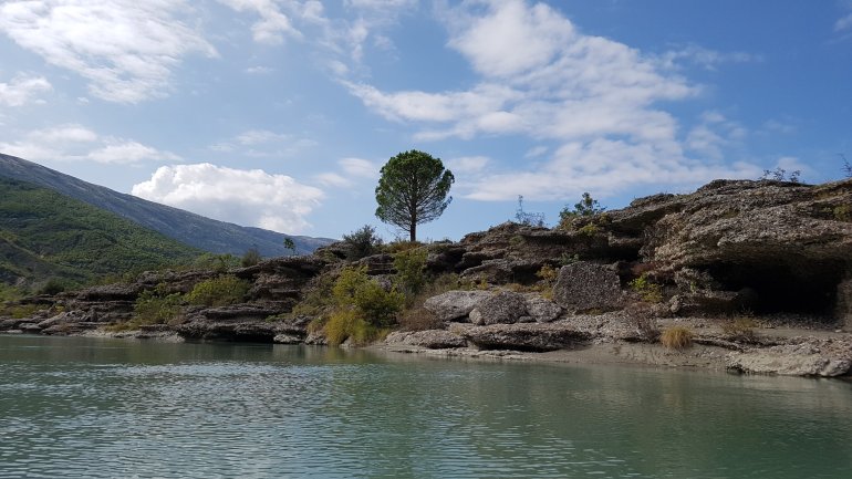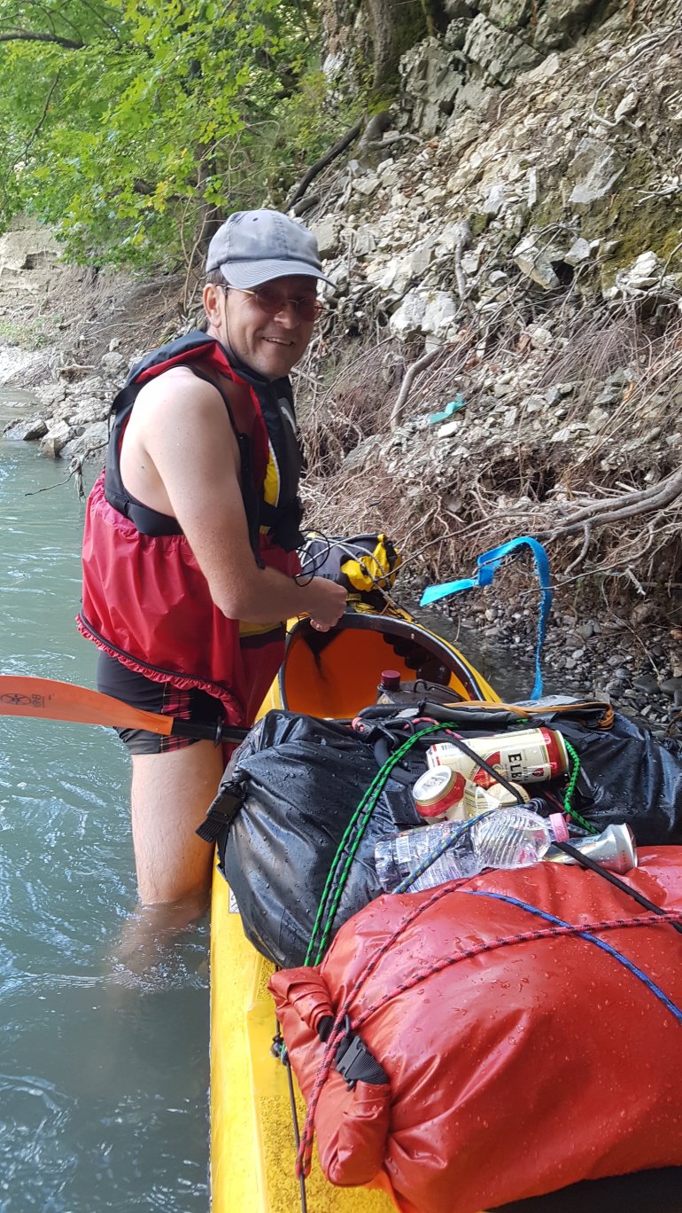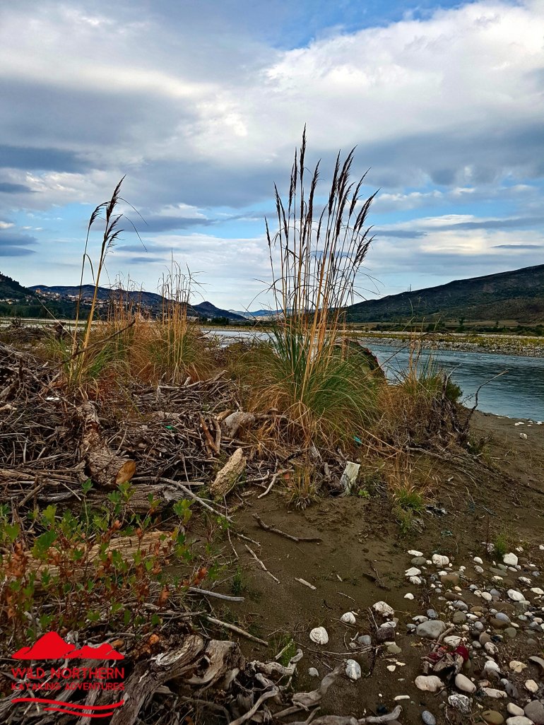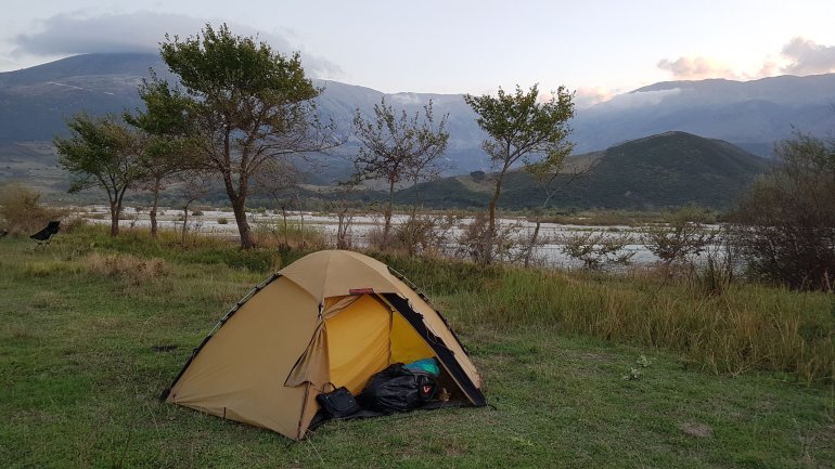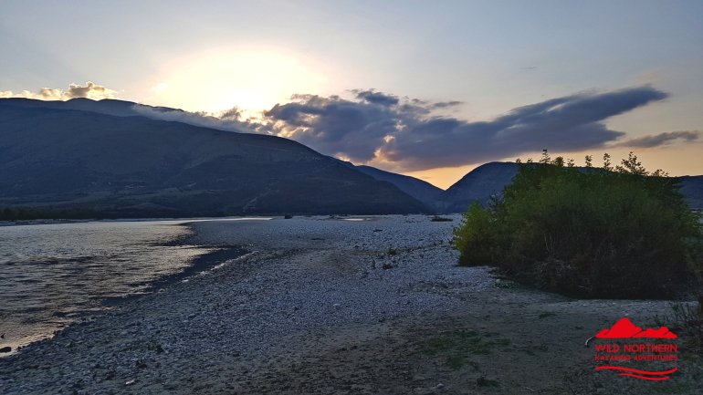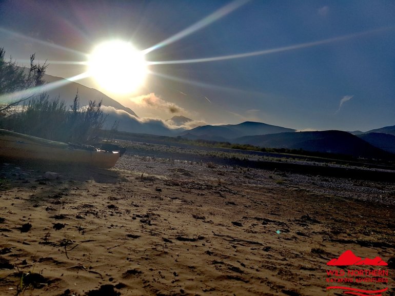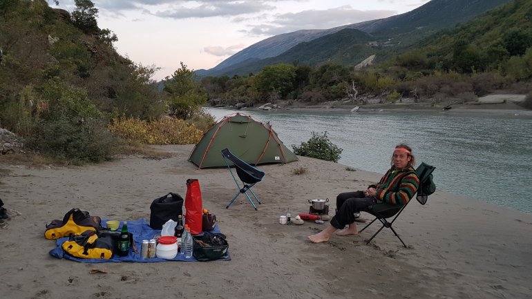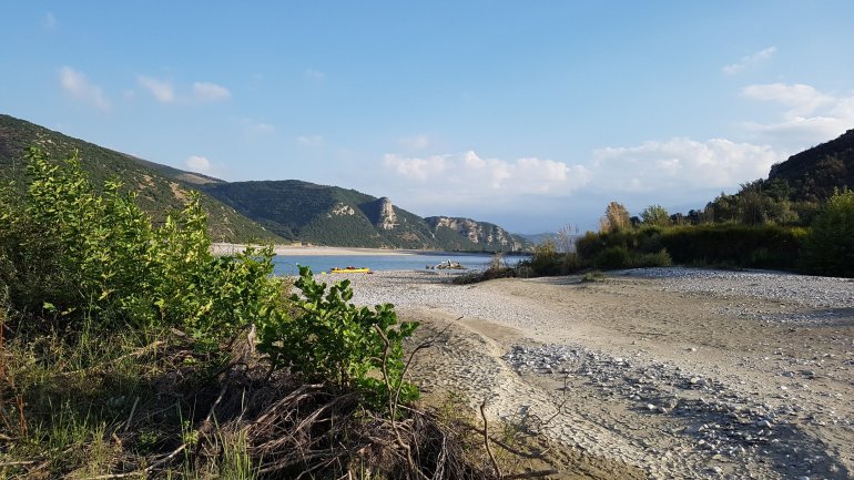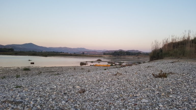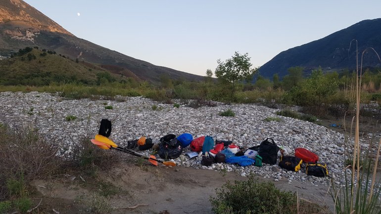 Alles haben wir noch, bis auf mein Paddel. Das ging mit der starken Strömung von dannen. Zum Glück habe ich eins in Reserve..Wenig später ist der Herzklopftag vorbei.. und wir landen in der Nähe von Tepelenë an, um uns ein Nachtlager zu suchen. Statt 2000er Bergen umgeben uns jetzt die kleinen Brüder, die 1000er, jedoch nicht mehr so nahe..