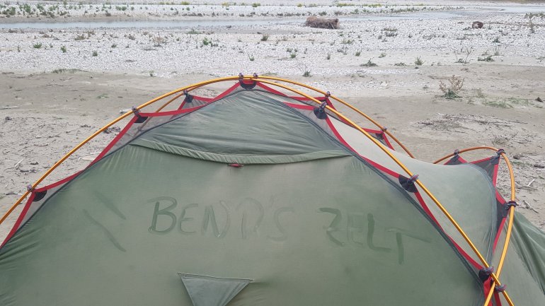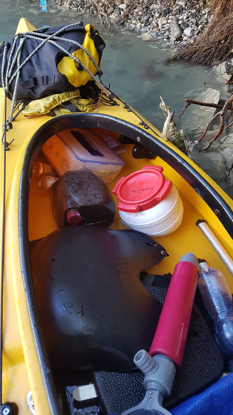 Der Fluss ist gefährlicher als gedacht, gerade wenn nicht soviel Wasser darin ist.. Alle ca. 500 m bis ein Kilometer gibt es enorme Stromschnellen, mit Wellen, die uns oft völlig überfluten bzw. bis ins Gesicht klatschen.Wir müssen 2x lenzen, da im Wildwasser Bends Spritzdecke abgefetzt wird….und finden am Nachmittag..ein wunderbares Plätzchen zum Schlafen..