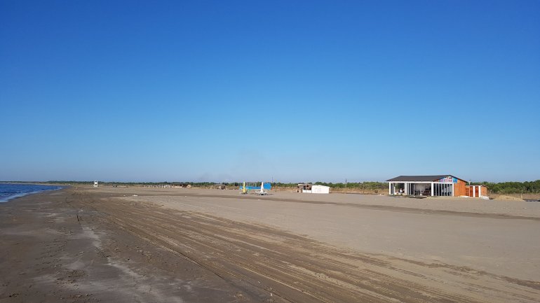 Wir fahren noch die 10 km an verlassenen, jedoch vermüllten Stränden entlang, bis die ersten Bars usw.kommen. Die meisten sind jedoch jetzt verlassen. Dabei ist es nach unserem Gefühl mit 27°C sehr warm, auch das Wasser. Wir trinken bei einem kleinen Stop ein Bier an einer Strandbar..