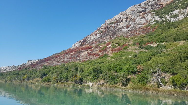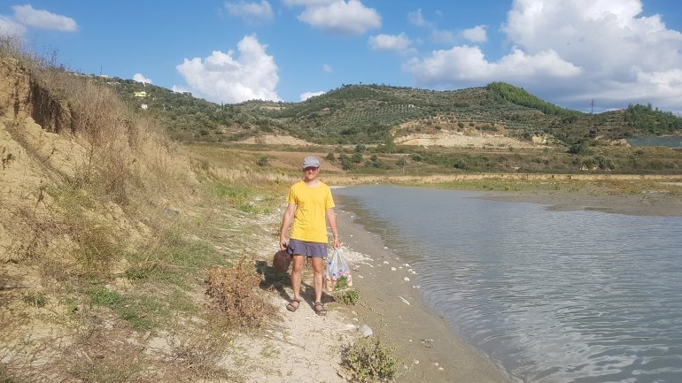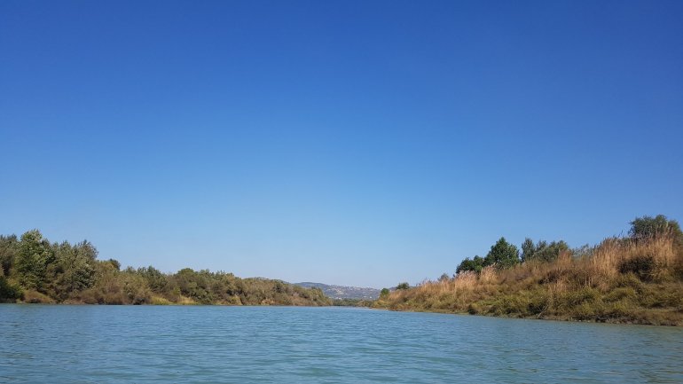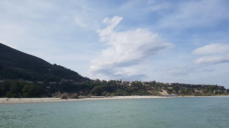 Noch 8 km trennen uns am Abend von der Adria..Bis morgen dann. 15.10.2019 Der Schäfer lenkt rücksichtsvoll am frühen Morgen seine Herde an unseren Zelten vorbei..Nach einem erfrischenden Bad starten wir gegen Mittag zur eigentlich letzten Etappe. Es soll die Vjosa hinab bis zur Mündung gehen und dann 10 km auf der Adria Richtung des kleinen Ortes Darëzezë e Re.