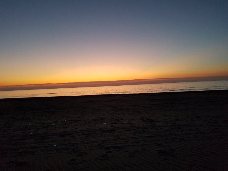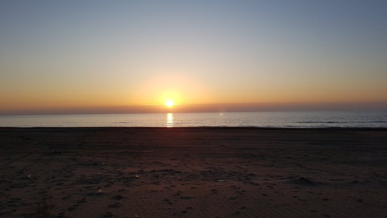 Sogar an einer Bar kommen wir vobei. Bei Grillenmusik beobachten wir, 35 km vor der Adria und nur noch 1-2 m über Meeresspiegel einen tollen Sonnuntergang bzw. Mondaufgang..