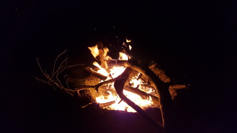 Wir sitzen am Feuer und genießen den Abend..