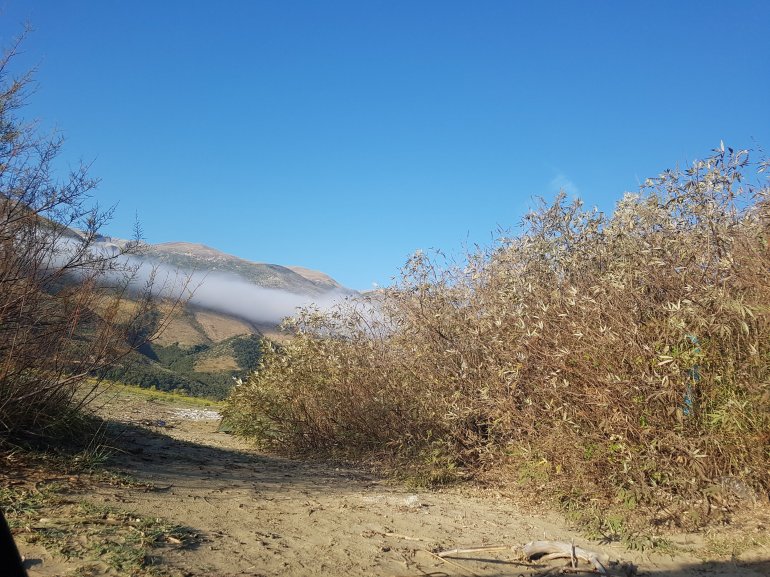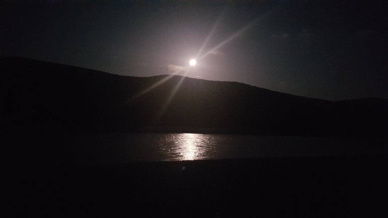 Gute Nacht bei Vollmond 13.10.2019 Auch heute weckt uns süßes Glockengeläut.Die Hirten treiben am anderen Ufer ihre Herden in die Berge.Die sehen teilweise seltsam aus. Brandrodung!
