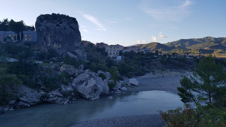 Ein Fischotter, der auf einem Flussstein seinen Fisch verspeist ist von uns völlig überrascht. Dann gehts im Sauseschritt auch schon nach Memaliaj, der letzten größeren Stadt zum Einkaufen..